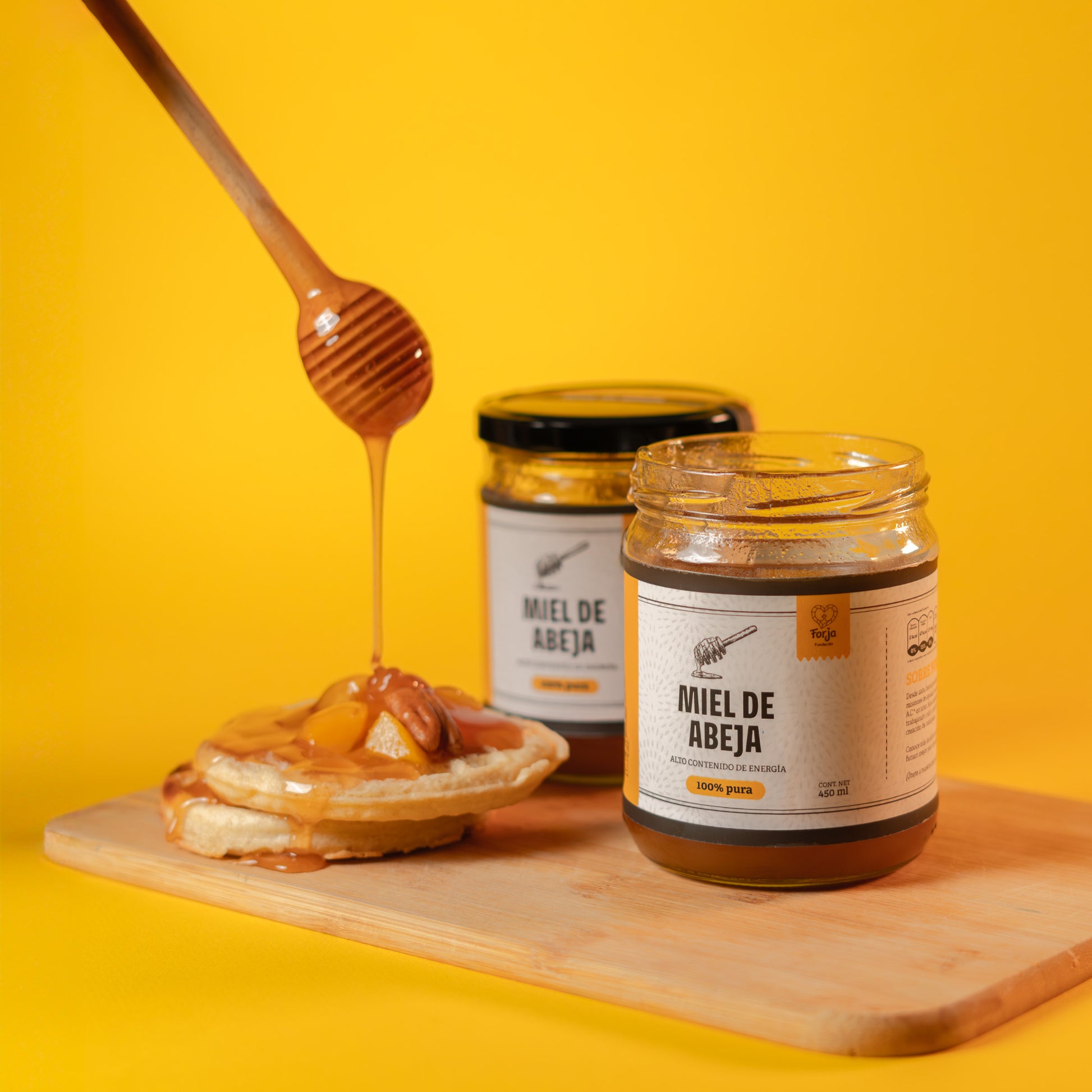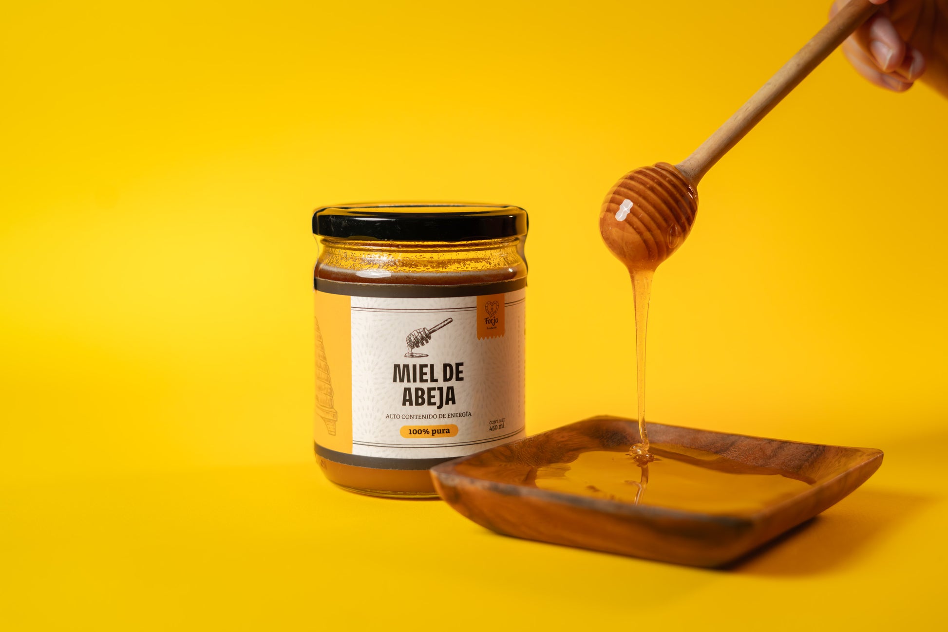 Miel 100% pura de abeja, de la mejor calidad artesanal. Frasco de 450 ml.